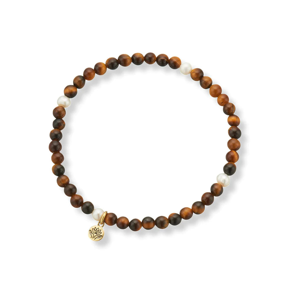 Invoke protection and luck with the Tigers Eye & Pearl Prosperity Gem Bracelet. The combination of Tiger’s Eye and Pearl brings a protective, grounding energy with calming, nurturing, and balancing properties. It blends Tiger’s Eye’s confidence-boosting, sun-ruled energy with Pearl’s wisdom and emotional balance, aiming to bring both inner strength and harmony. It is often used for confidence, stress reduction, and emotional stability. It's complemented by a healing brass lotus charm, making it a unique piece to treasure.