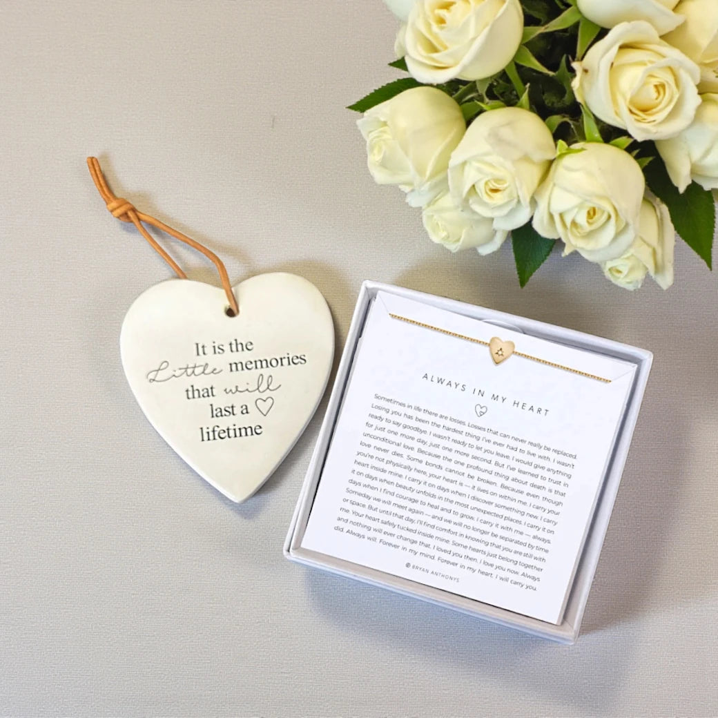 Sometimes in life there are losses. Losses that can never really be replaced. Our Always In My Heart Gift Box has been crafted with tender care for those navigating the profound loss of a loved one. Let this thoughtfully assembled Grief Box serve as a beacon of light during the darkest of days, offering a sense of hope and reassurance on the journey toward healing.