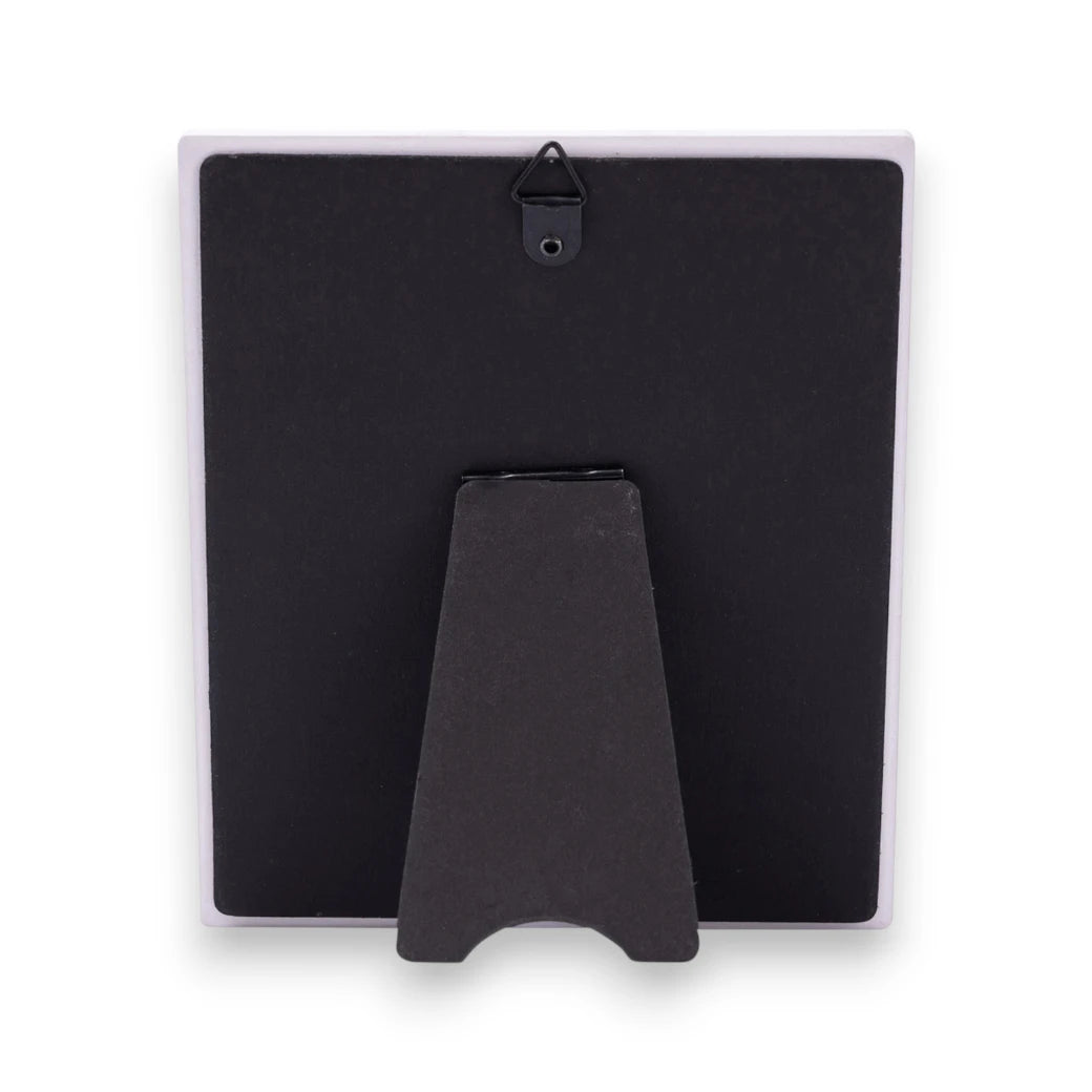 Comes with stand on the back or hook for hanging
