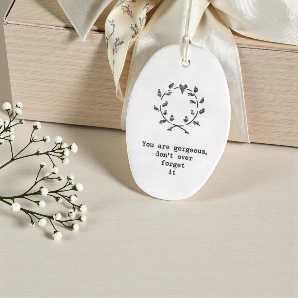 “You are gorgeous, don't ever forget it”. This unique decoration is ideal as a meaningful gift for a loved one in need of a pick-me-up.
