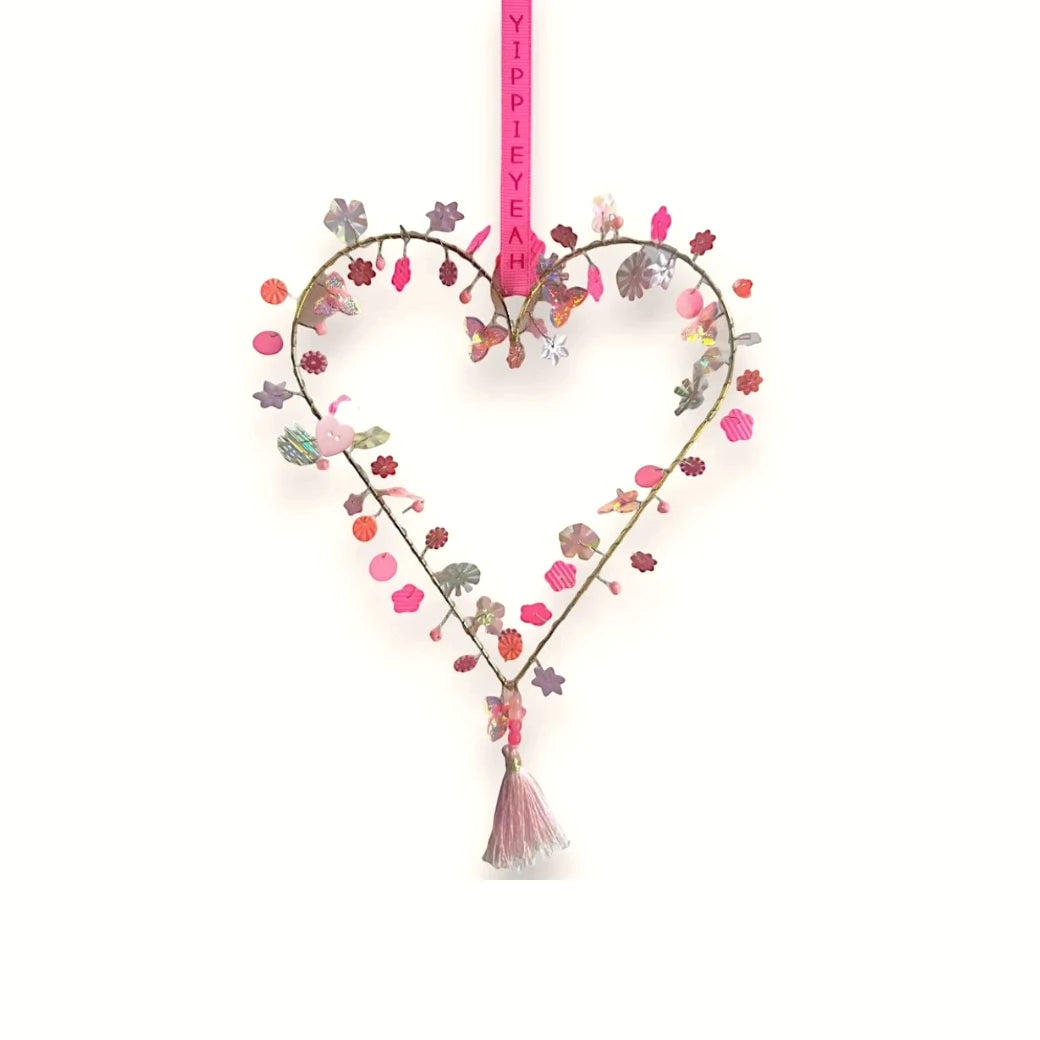 This heart-shaped hanging ornament is pure feel-good energy. With sparkling sequins, delicate beads and shimmering crystals in soft shades of pink, it’s finished with a playful “Yippie Yeah” ribbon that instantly lifts the mood. Hang it somewhere you’ll see every day as a little reminder to celebrate joy, love and the small moments worth smiling about.