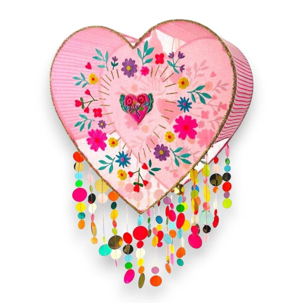 More than just a light cover, this handcrafted heart-shaped masterpiece is a radiant symbol of warmth, love, and transformation. Made from soft, hand-embroidered cotton and adorned with delicate flowers and shimmering multicolour sequins, it doesn’t just brighten a room, it breathes life into it.