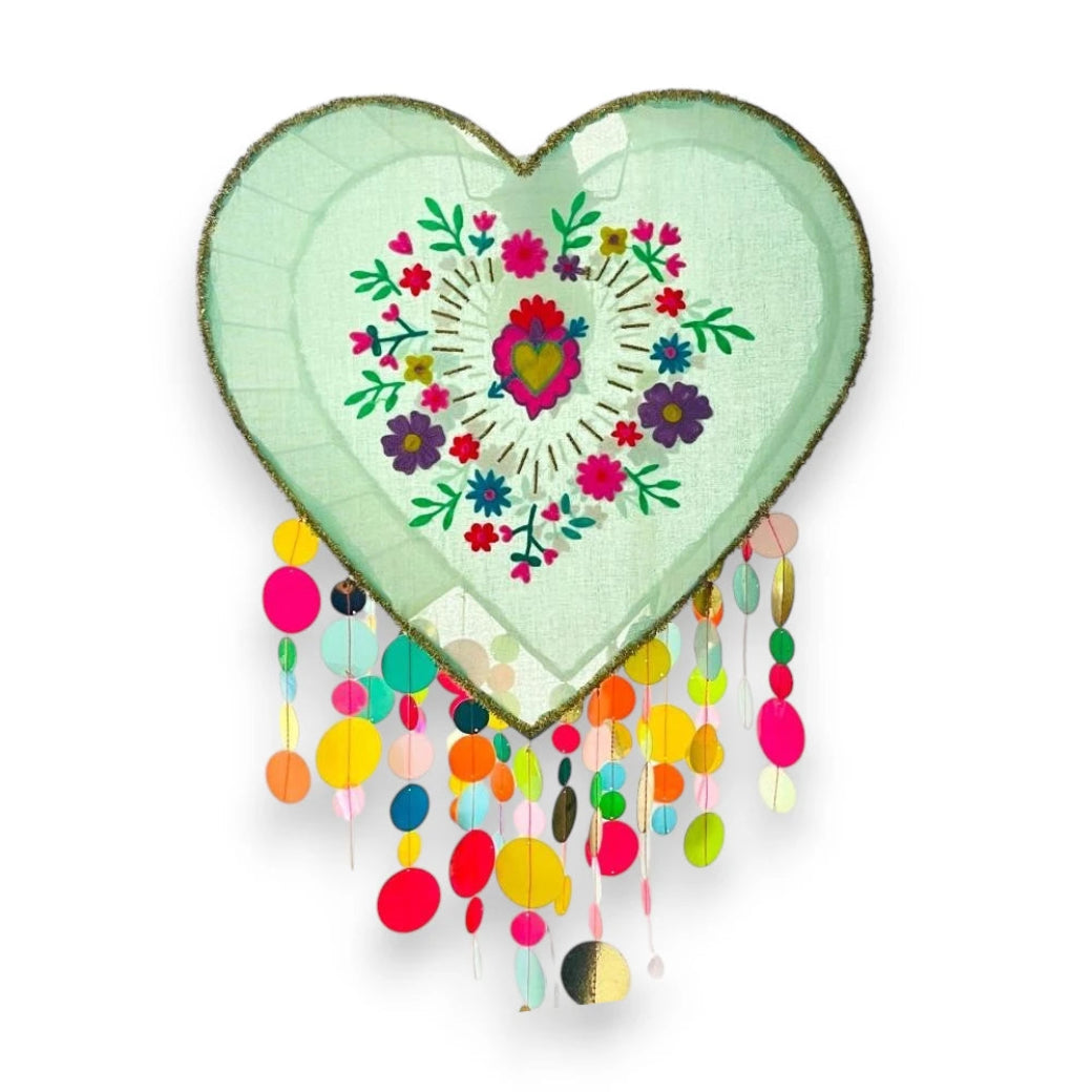 More than just a light cover, this handcrafted heart-shaped masterpiece is a radiant symbol of warmth, love, and transformation. Made from soft, hand-embroidered cotton and adorned with delicate flowers and shimmering multicolour sequins, it doesn’t just brighten a room, it breathes life into it.