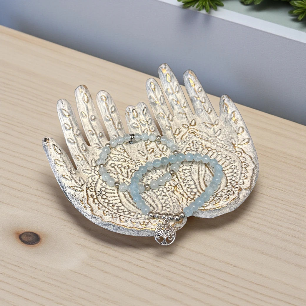 The Tree of Life Aquamarine & Rhodium bracelet set is a soft reminder to hold onto happiness, hope and a youthful sense of wonder, no matter where life takes you. Aquamarine is often linked with calm, clarity and emotional renewal, helping you move forward with a lighter heart and an open spirit. Paired with cool rhodium tones and the symbolic Tree of Life charm, this set celebrates growth, resilience and the beauty of staying connected to joy. Thoughtfully boxed and ready to gift, it’s a meaningful keepsake for new chapters, healing moments or simply reminding someone they are deeply cherished.