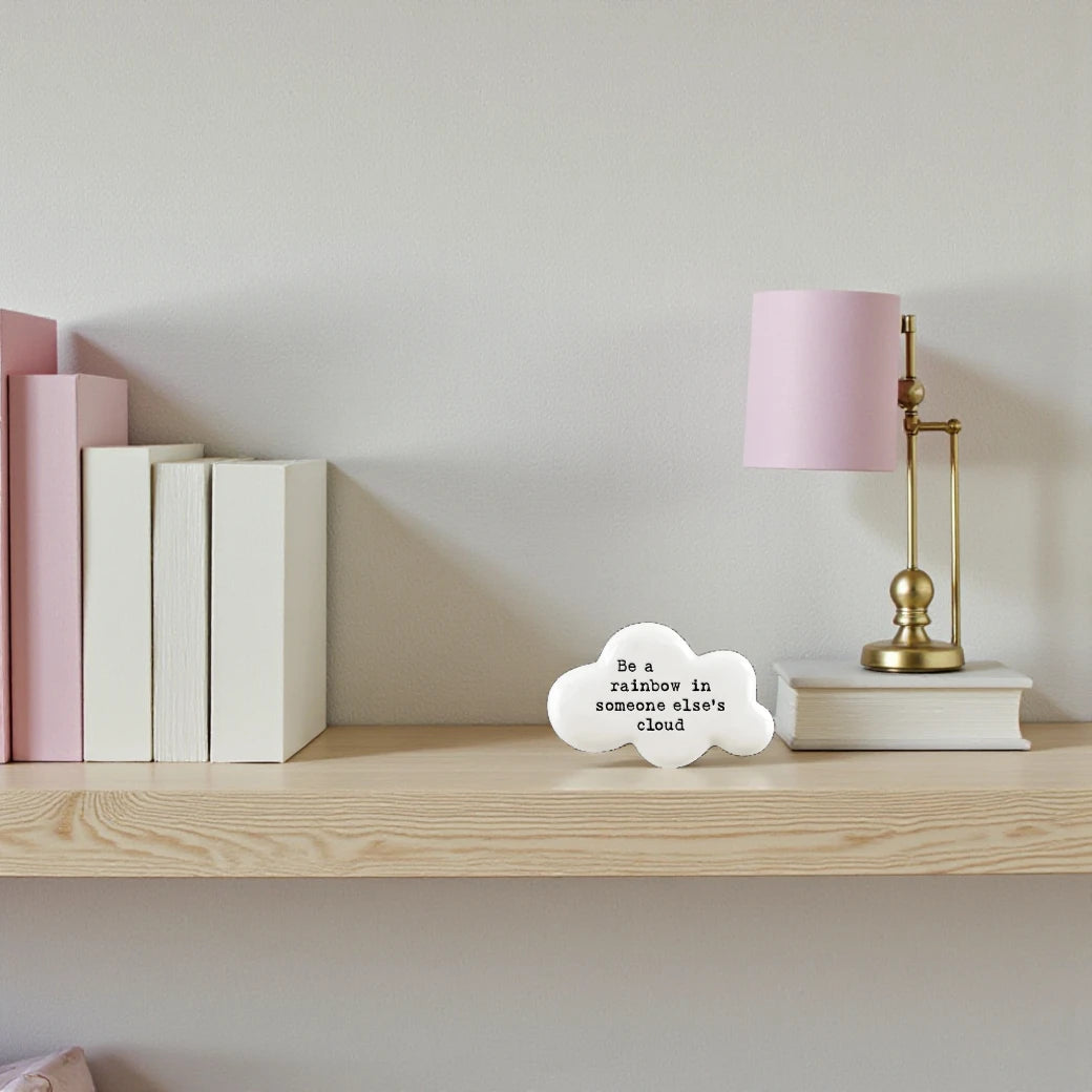 This delicate porcelain cloud carries a powerful reminder: “Be a rainbow in somebody else’s cloud.”